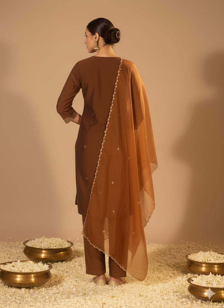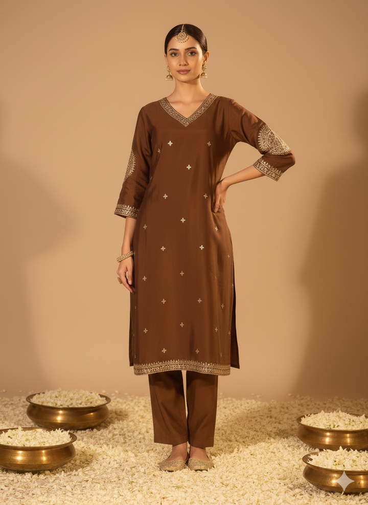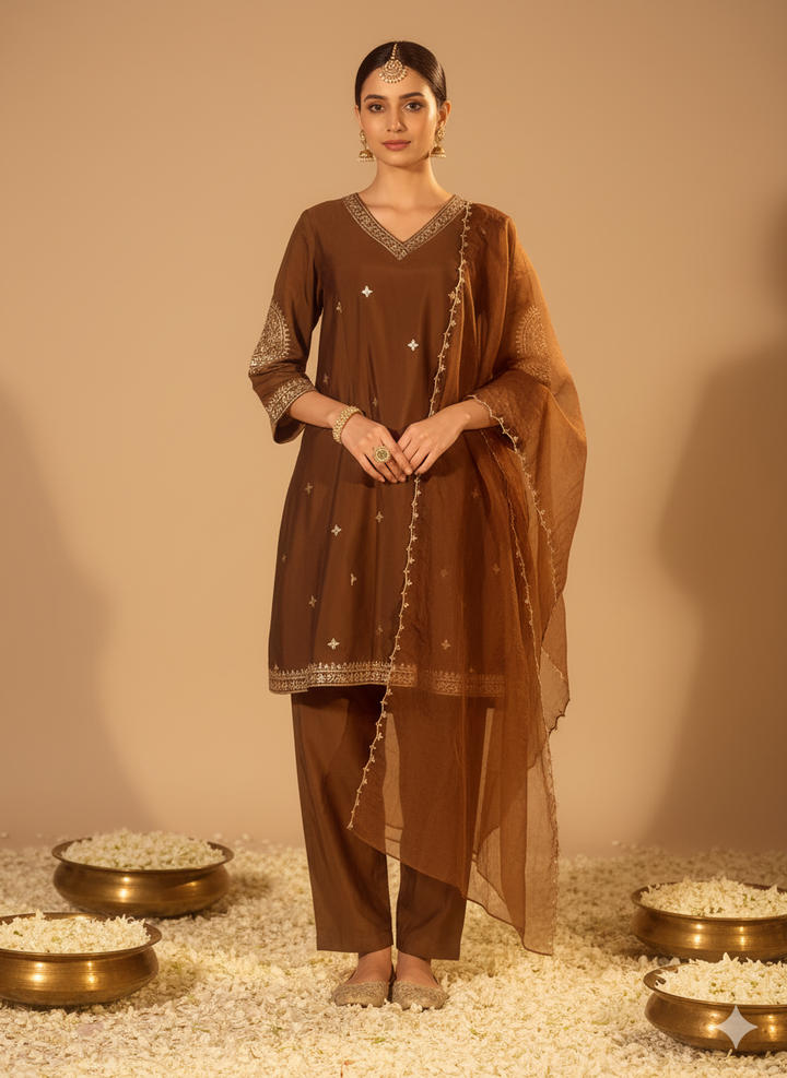 Brown Chanderi Silk Embroidered Suit with Gotawork Dupatta