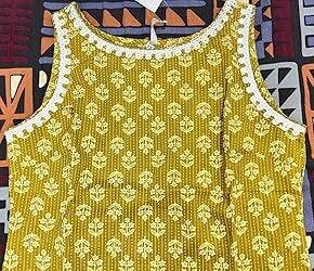 Introducing our stunning Vibrant Yellow Cotton Kurti, the perfect addition to your summer wardrobe! This sleeveless kurti features a beautiful, eye-catching shade of yellow that is sure to turn heads wherever you go. Made from high quality cotton, this kurti is not only stylish, but also incredibly comfortable to wear all day long. Whether you're headed to a casual weekend brunch or a special event, this kurti is the ideal choice for a vibrant and chic look. Don't miss out on adding this elegant and versatile piece to your collection - Shop Now and elevate your style with our Vibrant Yellow Cotton Kurti!